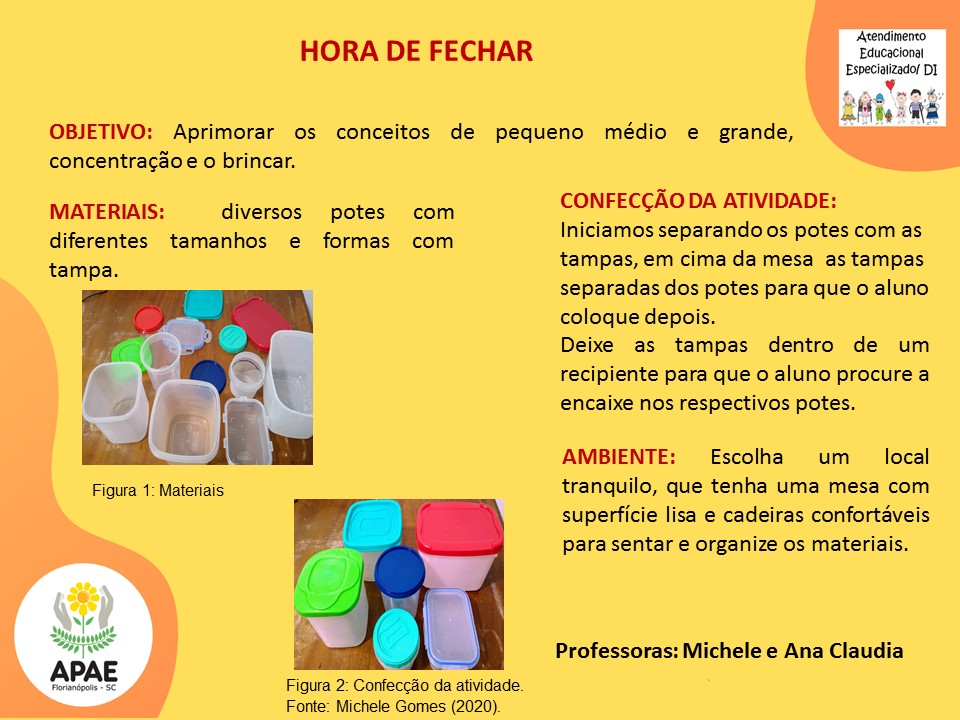 Serviço Pedagógico Específico - Pareamento de Potes e Tampas